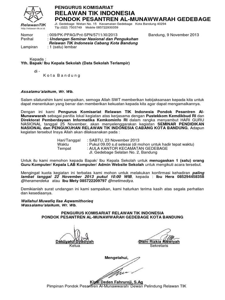 Contoh surat undangan resmi pembicara seminar kampus. Surat undangan adalah salah satu surat yang memuat ajakan kepada seseorang atau kelompok untuk menghadiri kegiatan tertentu. Departemen pendidikan dan kebudayaan sma negeri 60 kota bandung jalan asem. Contoh surat undangan resmi sangat banyak, namun pada umumnya memiliki tujuan yang sama, yakni mengundang pihak lain untuk menghadiri sebuah kegiatan. Hal yang membedakan karena keduanya memiliki struktur yang berbeda dan untuk keperluan.