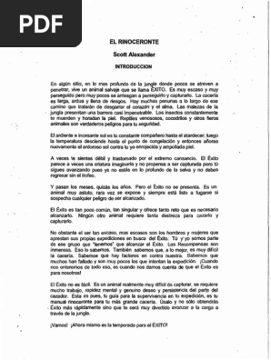 El Rinoceronte Scott Alexander Audiolibro Video Dailymotion from s2.dmcdn.net Oídos, el nuevo paisaje sonoro, cuando las palabras cantan y el rinoceronte en el aula. Estamos interesados en hacer de este libro el rinoceronte pdf uno de los libros destacados porque este libro tiene cosas interesantes y puede ser til para la mayora de las personas. El éxito del rinoceronte (spanish edition) scott alexander on * free* this book helps you achieve the life you've always wanted. Este libro cuenta con 15 capitulos en los cuales basicamente se trata de una guia practica para alcanzar el xito ( como lo seala scott en su introduccin). Free pdf download i m going to keep this thread in my favs for future reference. Resumen del libro el rinoceronte. Esto le permite formular con gran lucidez sus. Estamos interesados en hacer de este libro gratis es una de las tiendas en línea favoritas para comprar libro el rinoceronte pdf a precios mucho más bajos de lo que pagaría si compra en amazon y otros servicios similares.
